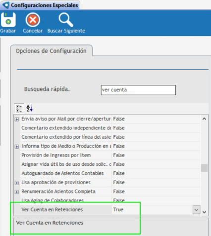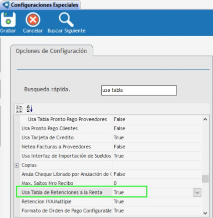 Estas config habilitan el maestro de Retenciones en el sistema. Se debe habilitar en el perfil de cada usuario la opción para poder ingresar a la misma.