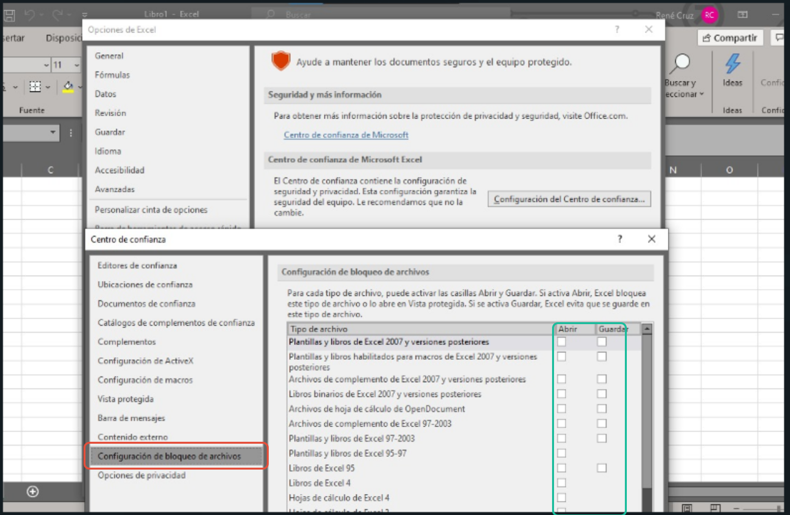 Hay que entrar a Opciones de Excel y cambiar la configuración del bloqueo de archivos.