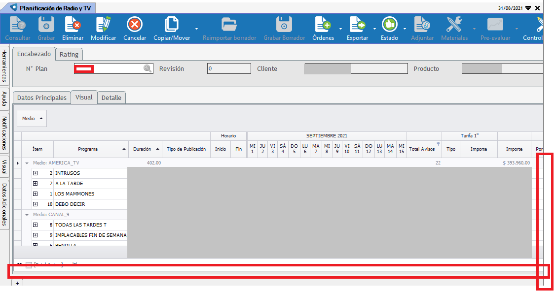 En el caso de que se este visualizando un Planes de Radio y TV y no se vean las flechas de navegación como en la siguiente imagen: