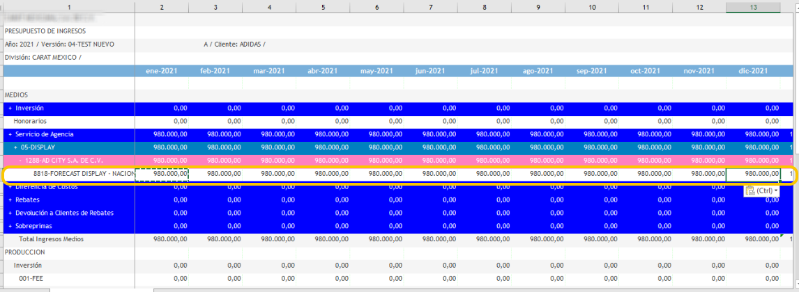 El Excel resultante se debe editar solo en las columnas y celdas correspondientes a los importes de MEDIOS, no se pueden eliminar o agregar nuevas celdas.