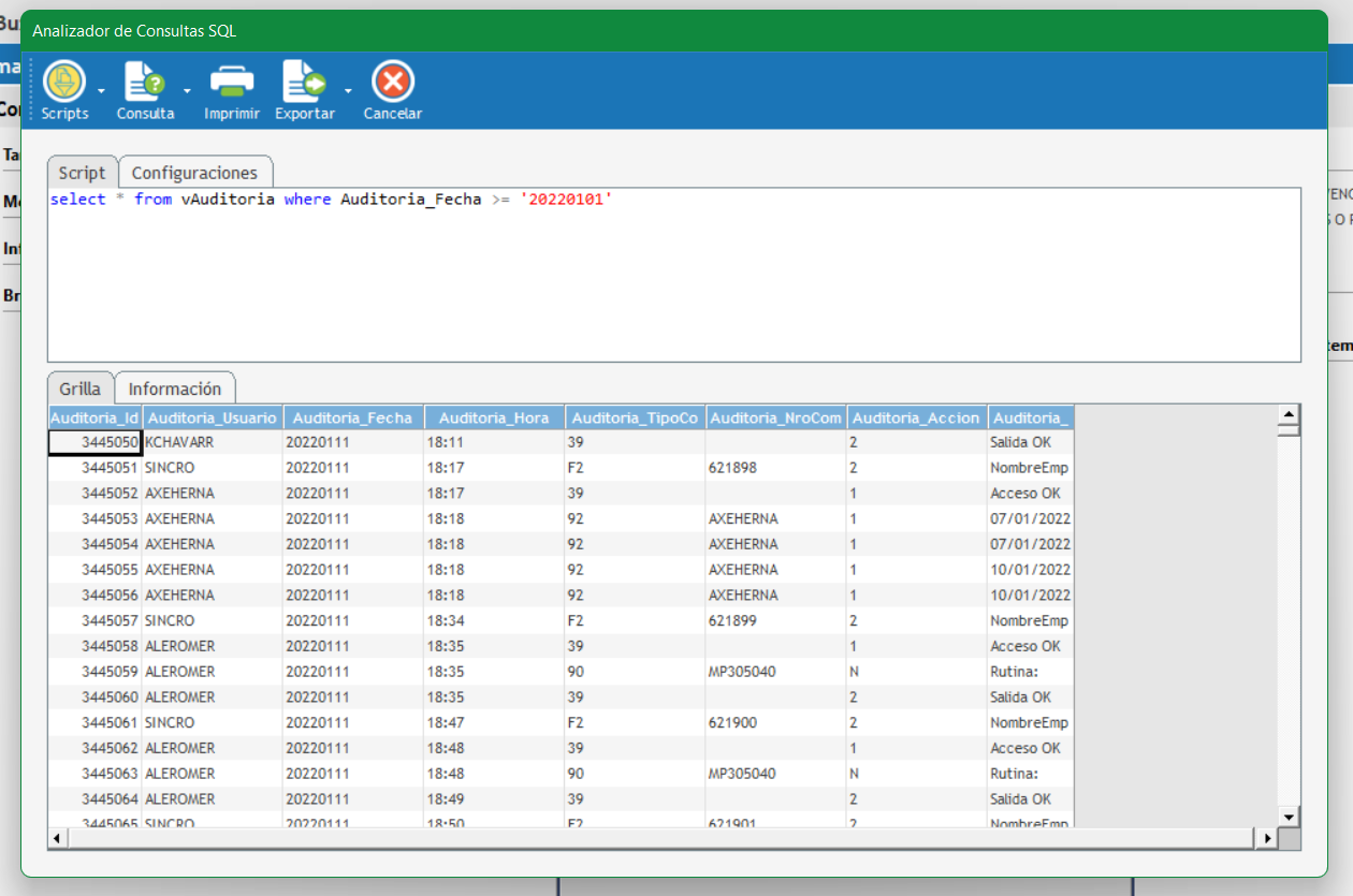 Actualmente si tenemos una vista en el sistema y se quiere realizar la consulta de la misma si tener acceso al SQL. Esto se puede realizar por medio del analizador de consultas, esta herramienta permite hacer consultas como se realizan en el SQL directamente sobre la base.