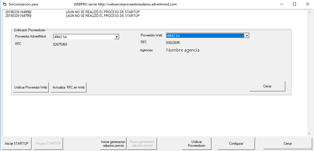 Este error se presenta por que puede ser que no estén bien unificados el proveedor, en las bases de AdvertMind, con relación a la base de Liveranto.