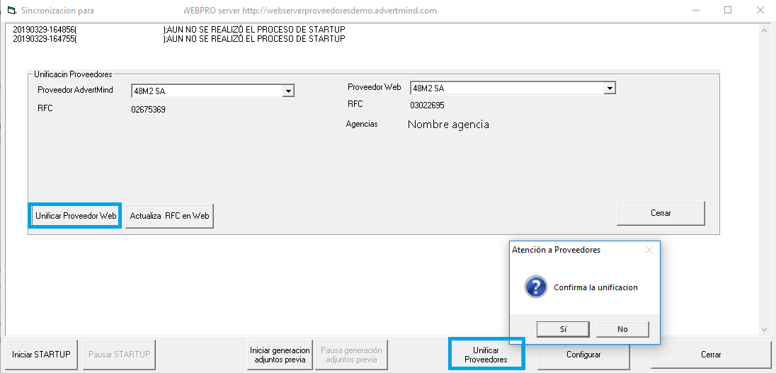 5. Entramos a unificar al proveedor en la Sincronización modo visual.