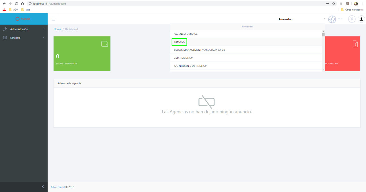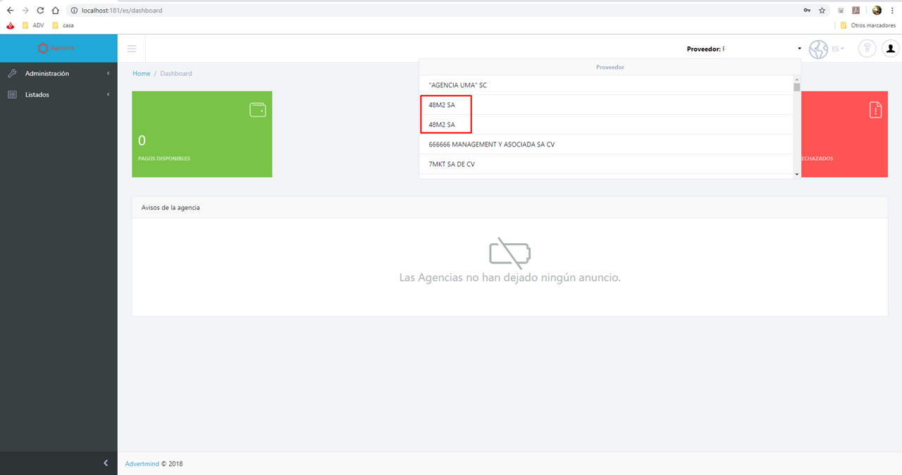 7. Revisamos el portal y ahora solo se muestra un proveedor