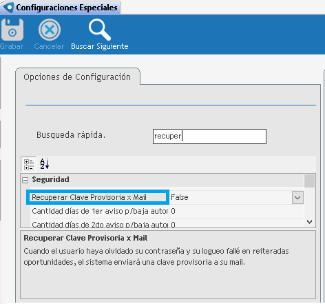 Hay una configuración especial en el sistema que permite habilitar en el log in la posibilidad de recuperar la clave mediante el mail, sin tener que pedirle al equipo de sistemas interno que le blanquee la clave.