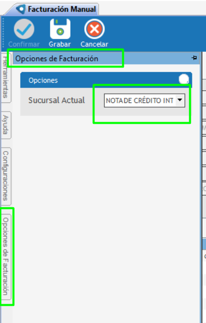 Para la facturacion en Facturación Manual debemos elegit la sucursal creada:
