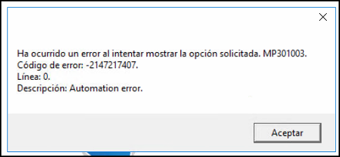 Al intentar abrir una opción se presenta el siguiente mensaje:
