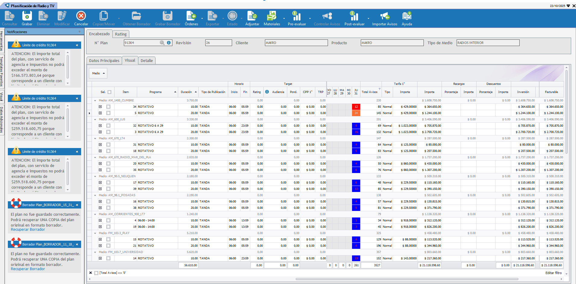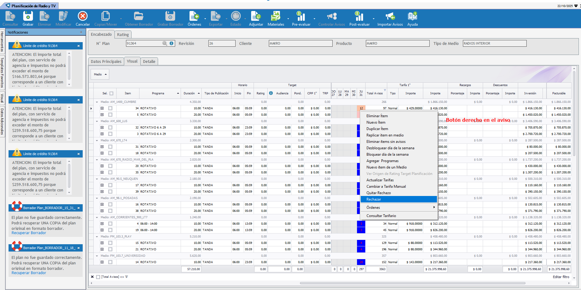 Mensaje: el sistema no permite facturar ni marcar la pauta como facturada.