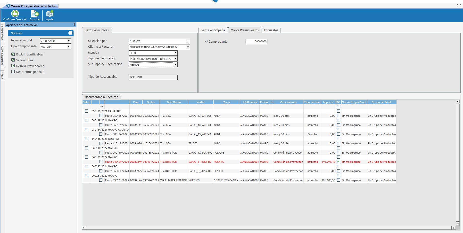 La pauta dejará de visualizarse en la pantalla “Marcar presupuestos como facturados al cliente”, indicando que el marcado finalizó exitosamente.