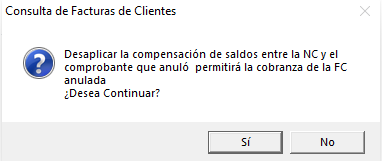 Sin embargo, si el objetivo es únicamente imputar una cobranza a las facturas, el sistema permite desvincular la NC de la factura original para asociarla en el proceso de cobranza.