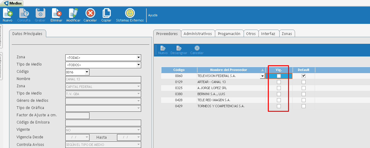 Es frecuente que se seleccione un medio sin validar previamente la relación con el proveedor. En el momento de emitir la orden de publicidad, el sistema puede impedir la operación si el proveedor no se encuentra vigente.