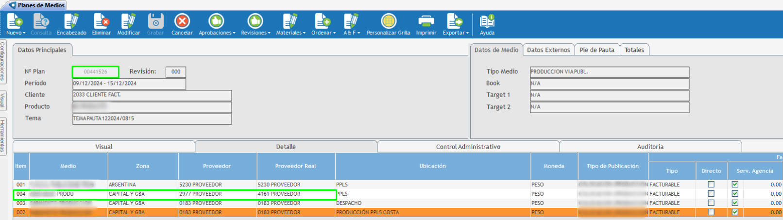 Si embargo, sucede que si no se lo configura adecuadamente, por mas que el proveedor figure como intermediario, y en el plan de medios se indique correctamente cual es el real y cual el intermediario, al momento de generar la orden de publicidad y al intentar cancelar la deuda sigamos observando que aún figura el proveedor real.