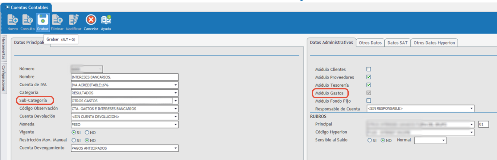 Al seleccionar la cuenta contable, confirmar cual corresponde para gasto.