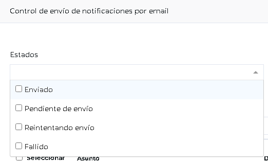 Cuando ingresamos con un usuario administrador en la barra lateral disponemos dentro de la administración, el control de notificaciónes, donde disponemos de los siguientes estados a validar.