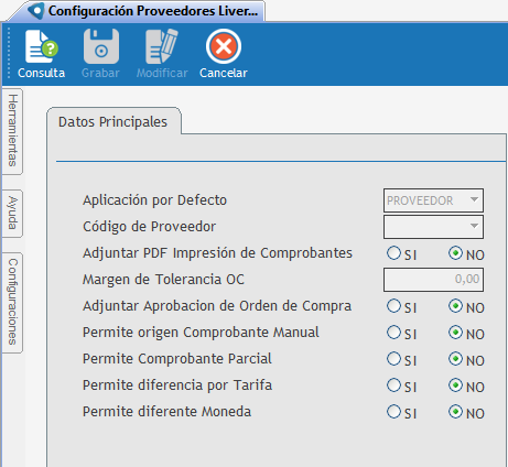 Por defecto, se pueden definir algunas formas de trabajo para aplicar a los proveedores, pero para consultarlas o clasificarla de forma diferente se provee, desde el sistema de gestión, una forma de consultarlos y ajustar la configuración.