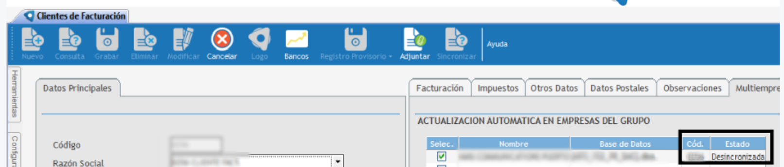 3. Verificar si el cliente aparece desincronizado para alguna empresa.