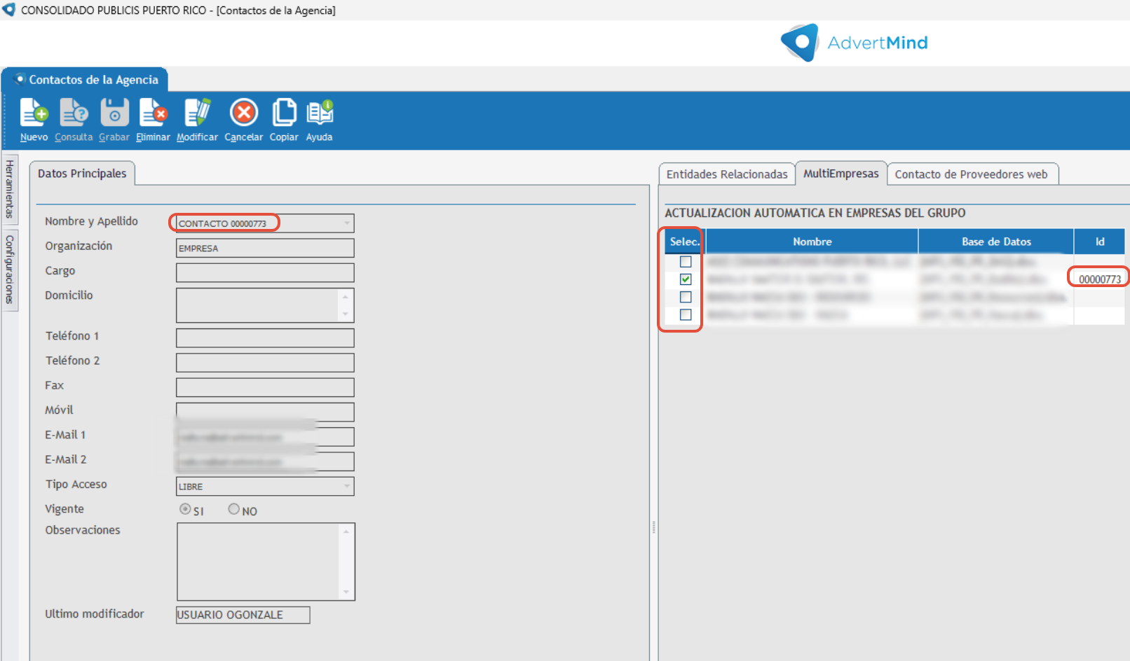 4. Confirmar si el contacto está replicado en todas las bases correspondientes.