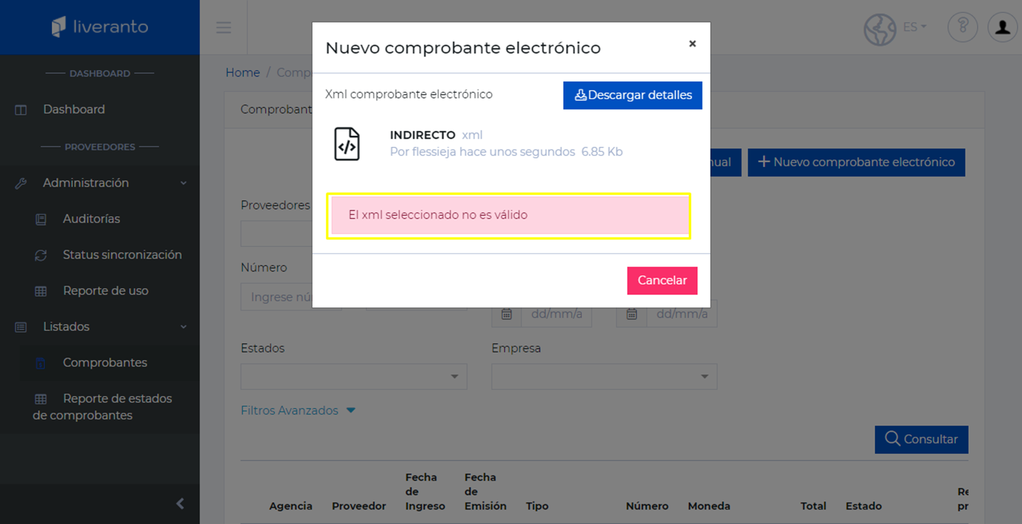 Si el comprobante no es válido, el proveedor debe corregir el problema.