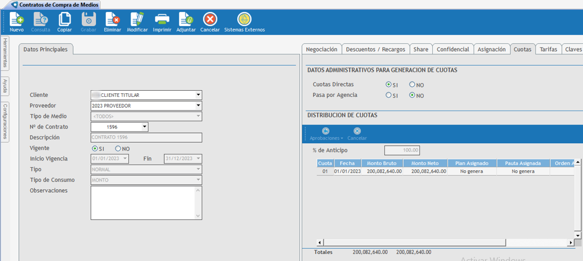 • Debe estar correctamente asignado en el contrato