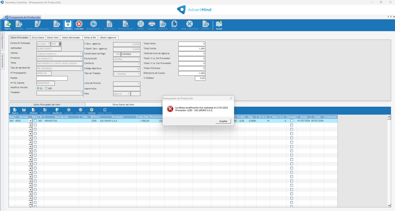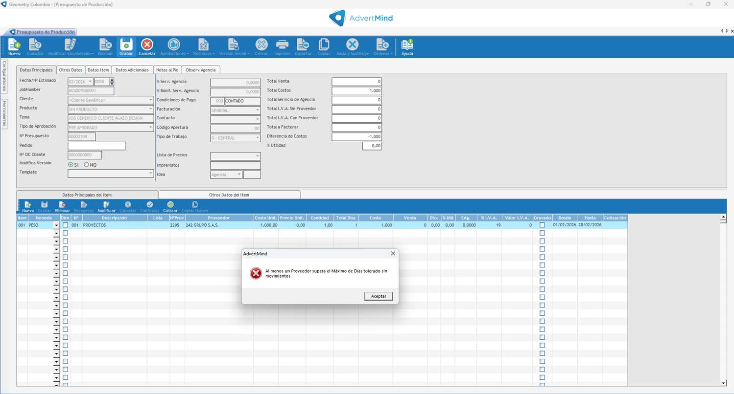 •Si queremos usar el proveedor el sistema indica que no es posible