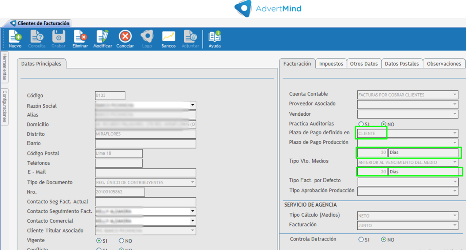 A su vez, si el usuario tampoco modifica el vencimiento en el Plan de Medios o en el Presupuesto de Producción, la factura tomará automáticamente el vencimiento configurado en el maestro de clientes de facturación.