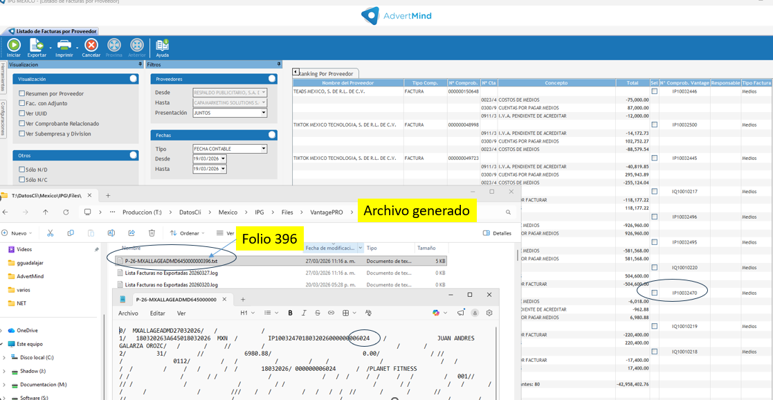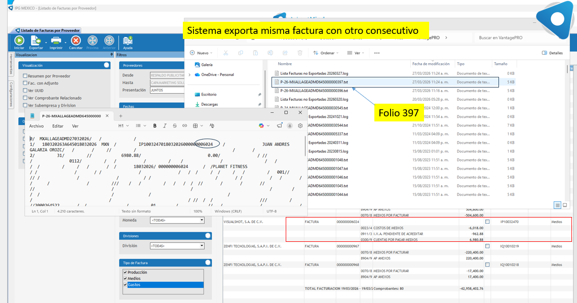 Abriendo el TXT se detalla el número de factura.