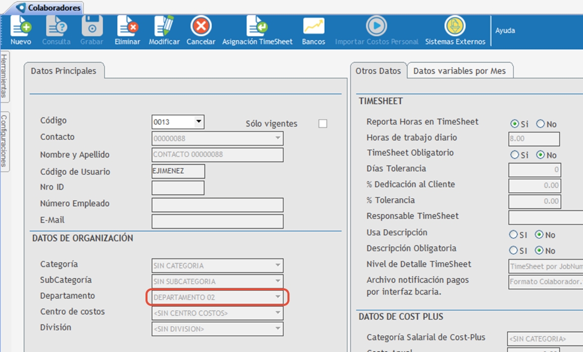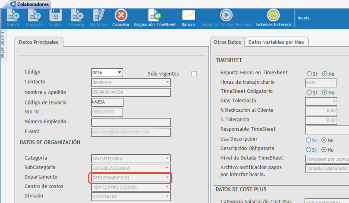 Primero, al colaborador que va a cerrar los Jobs por Cuentas se le debe asignar el departamento CUENTAS.