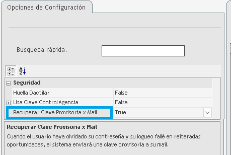 Alternativa 1: Se debe habilitar la configuración especial "recupero clave provisoria por mail"