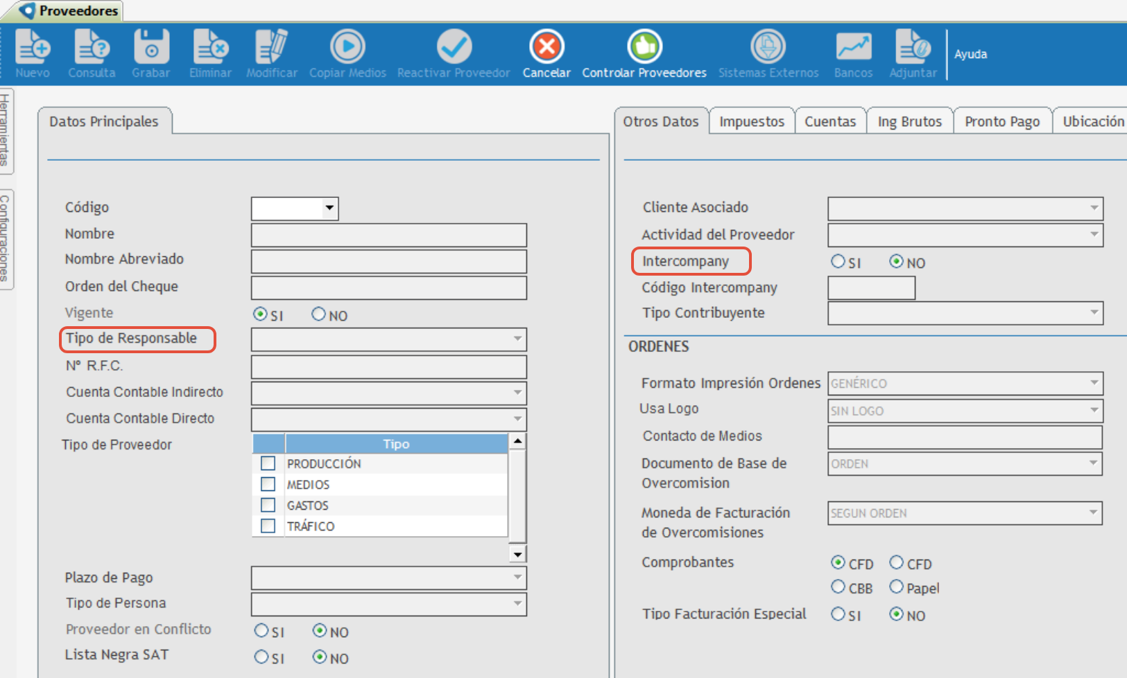 Aplica cuando el proveedor es nacional, extranjero y si esta marcado como intecompañias.