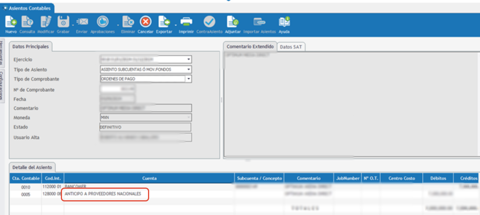 Al agregar un anticipo en órdenes de pago, el sistema puede tomar diferentes cuentas contables, según alta del proveedor.